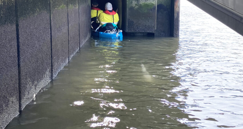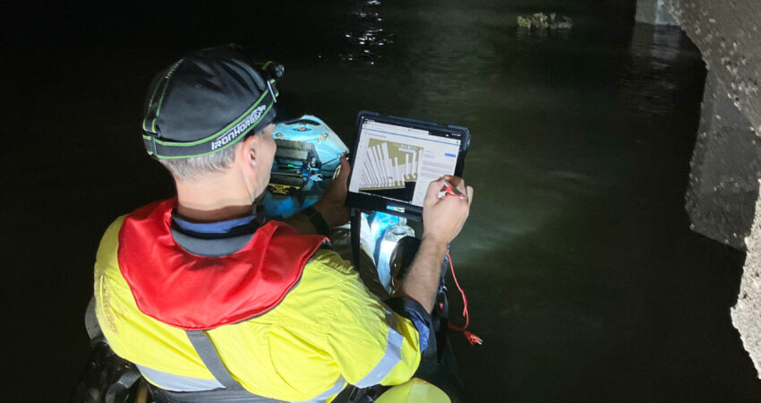 It was clear from the outset that this was not going to be your stock-standard inspection. The structure was a unique beast that threw equally unique challenges at those wanting to take a closer look. In order to complete a thorough investigation, the team implemented innovative access methods and employed out-of-the-ordinary equipment – think kayaks, a team of divers and helmet-mounted underwater cameras.