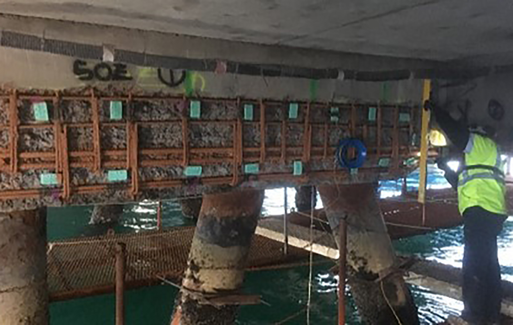 The purpose of the works is to increase the life of the structure through hydro-demolition of dilapidated concrete; replacement of corroded reinforcement steel, inclusive of welding to AS 1554.3 — a standard to which multiple Duratec personnel are prequalified; installation of sacrificial