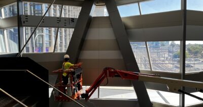 The internal cladding located inside the West Building was of composite aluminum cladding, plasterboard lining and polyester insulation. The scope of works completed to the West building was removal and disposal of existing interior cladding and insulation, and installation of new 3mm folded cassette style cladding system including replacement of insulation to an acoustic grade insulation.