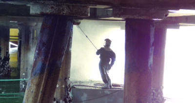 The scope of works comprised the remediation of the concrete elements of the wharf such as longitudinal and transverse beams, fender beams, concrete piles and the underside of the deck, including: